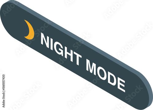 Wall mural : Isometric night mode button with crescent moon icon, enabling dark theme for comfortable viewing in