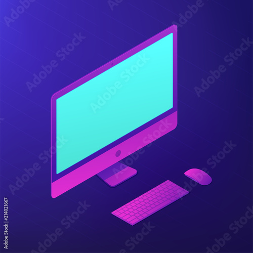 Wall mural : Isometric personal computer with a screen, keyboard and mouse