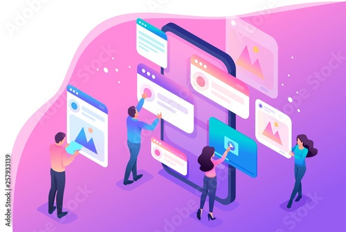 The watermark will not be included on Wall mural.: Isometric process of creating application design