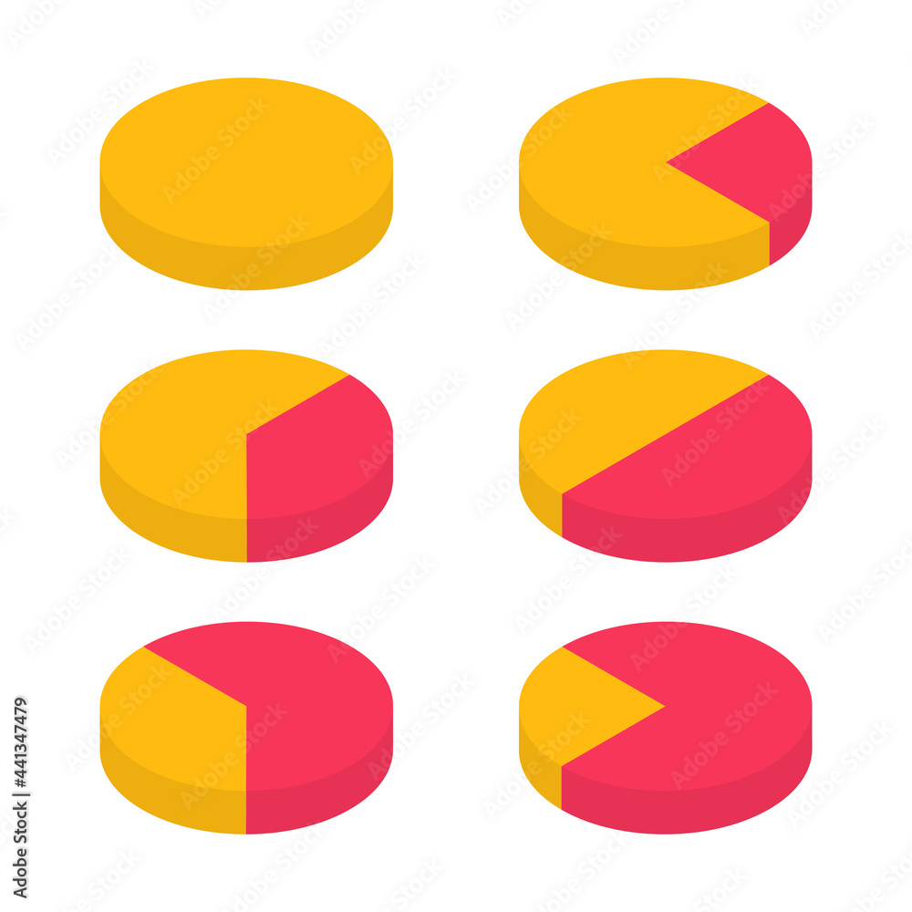 The watermark will not be included on Wall mural.: Isometric round diagrams with different heights set - pie chart infographic collection - statistics in