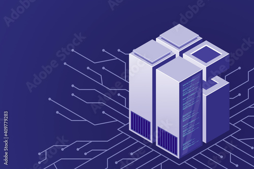 Isometric servers vector design - isometric data center - data center landing page - vector illustratioWall mural