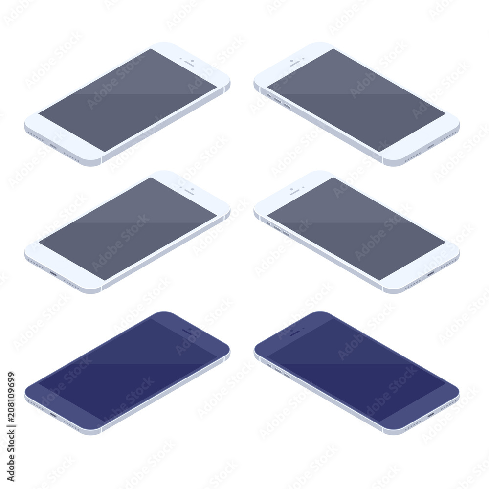 The watermark will not be included on Wall mural.: Isometric smartphone kit isolated on white background - technology and computing design elements - hor