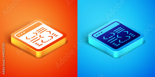 Wall mural : Isometric software, web developer programming code icon isolated on orange and blue background - java