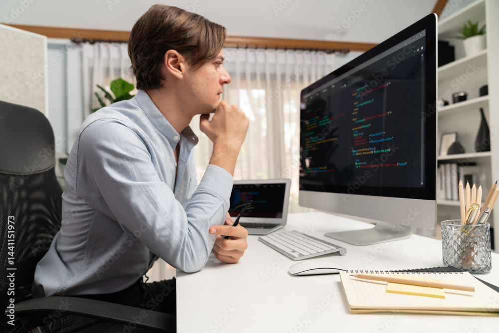 Wall mural it developer looking at online software development information on pc align working laptop with codi - Wall murals Wall mural it developer looking at online software development information on pc align working laptop with codi - Wall murals