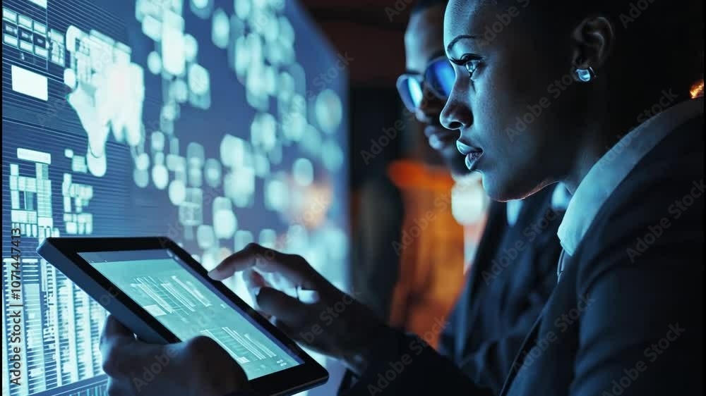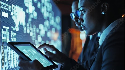 The watermark will not be included on Wall mural.: It specialists using a digital tablet in a control room -