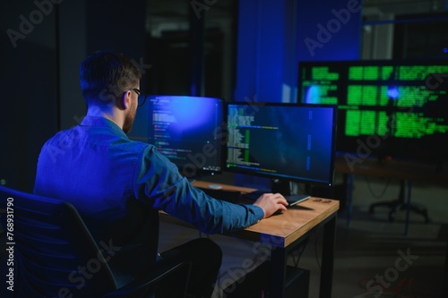 The watermark will not be included on Wall mural.: It technician person with technology for typing code, future and data analytics