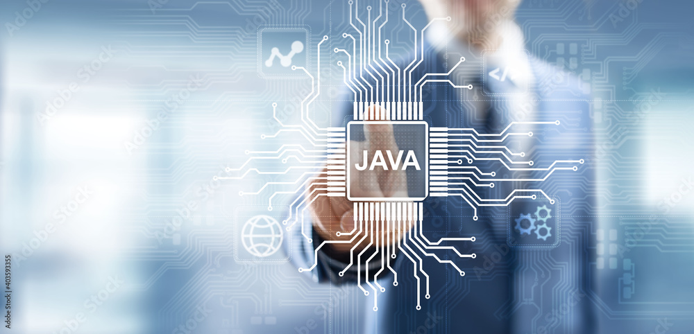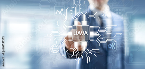 Wall mural : Java programming language application and web development concept on virtual screen -