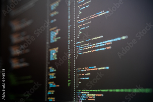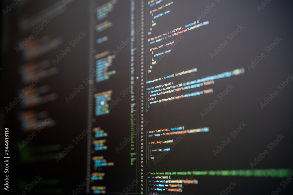 Wall mural javascript code in various colors on a dark mode computer screen. - Wall murals Wall mural javascript code in various colors on a dark mode computer screen. - Wall murals