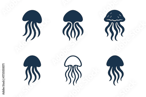 Wall mural : Jellyfish logo variations - jellyfish in motion - set logo of jellyfish in motion: abstract floating j