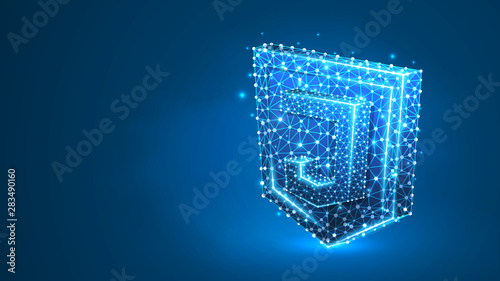 Wall mural js, java script coding language sign. device, programming, developing concept. abstract, digital, wi