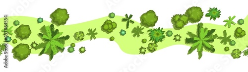 Wall mural jungle forest top view. horizontal seamless composition. overgrown pretty rainforest. isolated on a