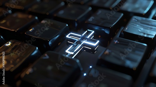 The watermark will not be included on Wall mural.: Keyboard of a computer with a cross on it conceptual photography : generative ai