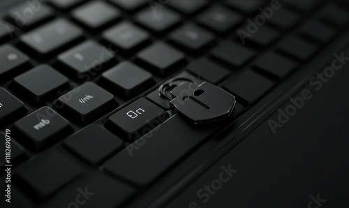 Wall mural keyboard with a key on it. the key is locked and the keyboard is black. concept of security and prot