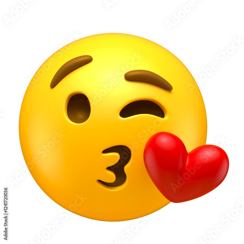 Wall mural kissing emoji with heart in 3d render with transparent background - Wall murals Wall mural kissing emoji with heart in 3d render with transparent background - Wall murals