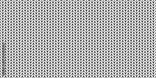 Wall mural knit black and white pattern. knitting seamless classic vector pattern. simple knitted pattern on wh