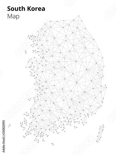 The watermark will not be included on Wall mural.: Korea map illustration in blockchain technology network style isolated on white background