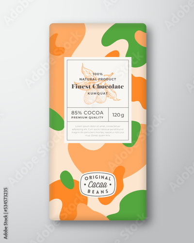 The watermark will not be included on Wall mural.: Kumquat chocolate label - abstract shapes vector packaging design layout with realistic shadows - mode