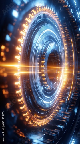 Wall mural labor day concept. abstract futuristic circular design with glowing elements.
