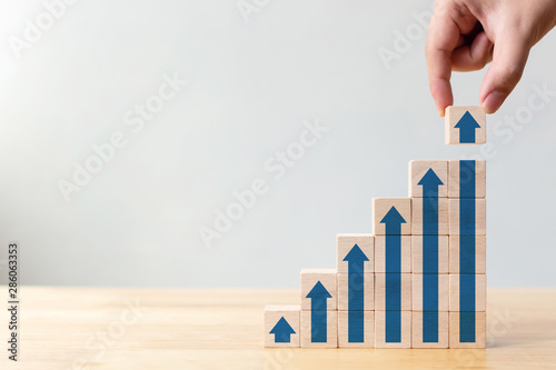 Wall mural ladder career path for business growth success process concept.hand arranging wood block stacking as - Wall murals Wall mural ladder career path for business growth success process concept.hand arranging wood block stacking as - Wall murals