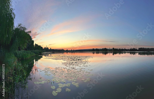 The watermark will not be included on Wall mural.: Lake with smooth water at sunset