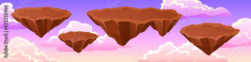 Wall mural land island floating in pink sky game vector illustration. cartoon level with empty ground platform  - Wall murals Wall mural land island floating in pink sky game vector illustration. cartoon level with empty ground platform - Wall murals