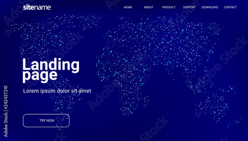 Wall mural : Landing page design with world map in the form of glittering stars in the sky -