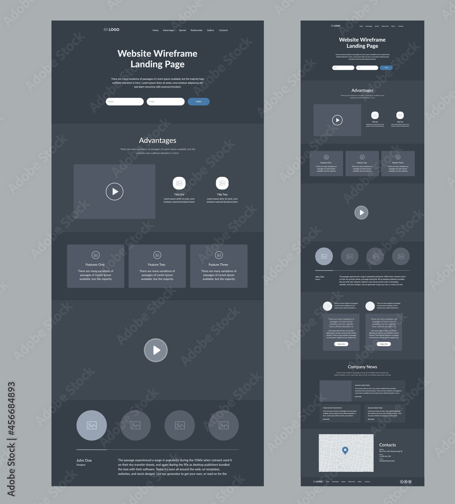 The watermark will not be included on Wall mural.: Landing page design - dark site wireframe layout interface -