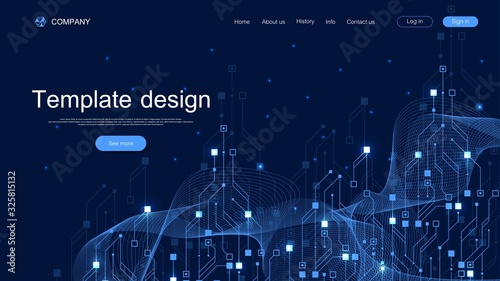 Wall mural landing page tech background with abstract circuit board textures. geometric abstract background wit