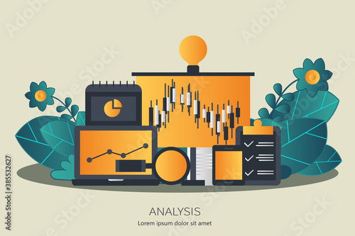 The watermark will not be included on Wall mural.: Landing page template of business analysis - modern flat design concept of web page design for websit