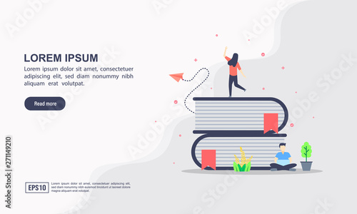 Wall mural : Landing page template of online education - modern flat design concept of web page design for website