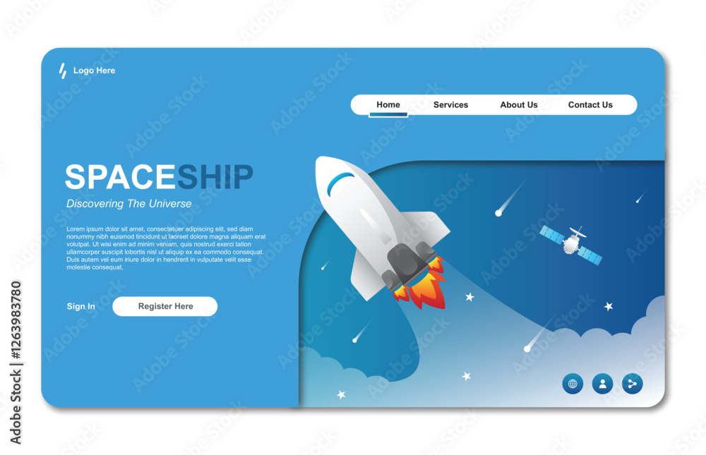 Wall mural landing page template with startup concept. web design template. development technology. vector illu