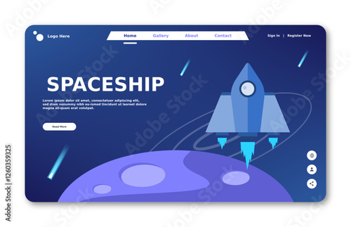 Wall mural landing page template with startup concept. web design template. development technology. vector illu