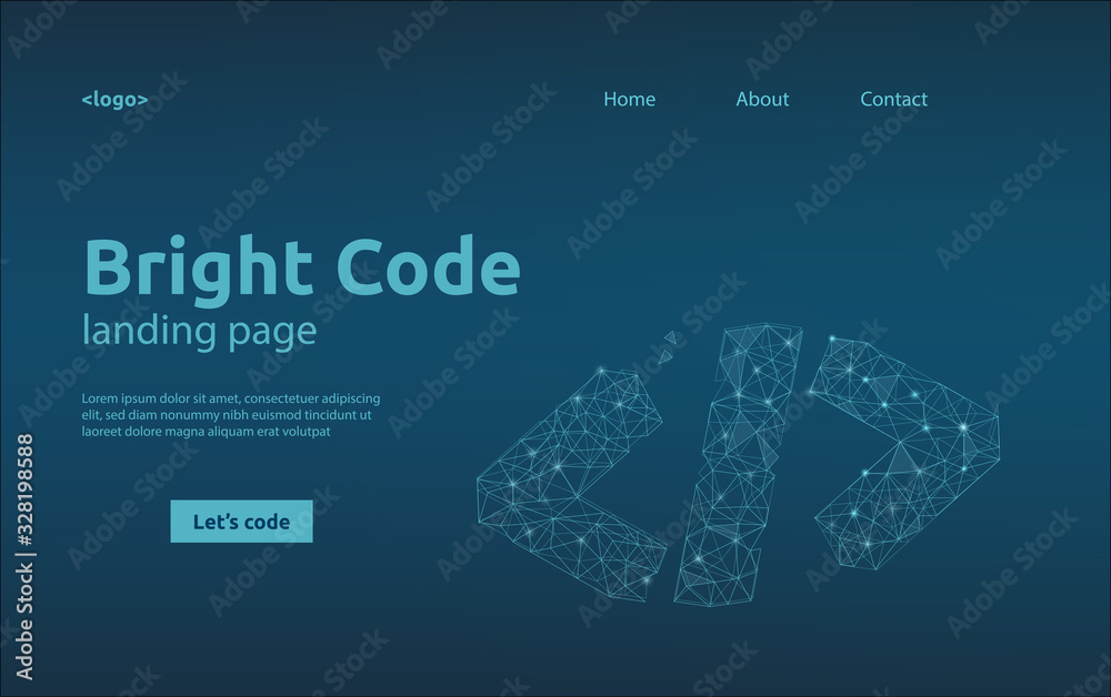 Wall mural landing page template with symbol of code in polygonal wireframe style. vector concept for software  - Wall murals Wall mural landing page template with symbol of code in polygonal wireframe style. vector concept for software - Wall murals