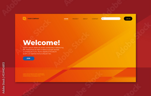 Wall mural : Landing page template with triangle geometry shape on orange background for website home page