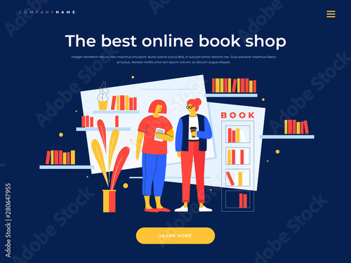 Wall mural landing page template. concept of an internet library. young cartoon girls talking in library on bac - Wall murals Wall mural landing page template. concept of an internet library. young cartoon girls talking in library on bac - Wall murals