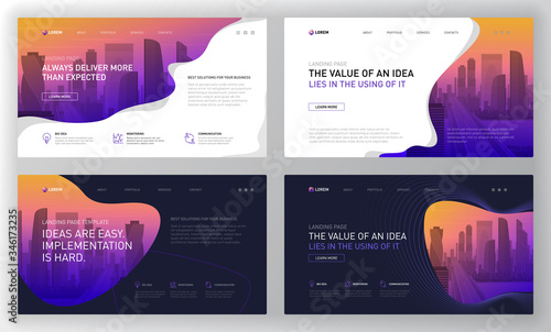 The watermark will not be included on Wall mural.: Landing page templates set for business website - modern web page design concept layout for website -