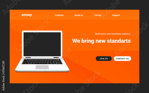 Wall mural landing page vector laptop website. web design landing page app template