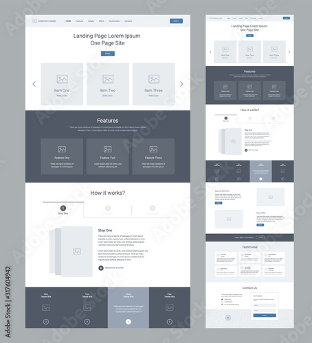 Wall mural : Landing page wireframe design for business - one page website layout template - modern responsive desi