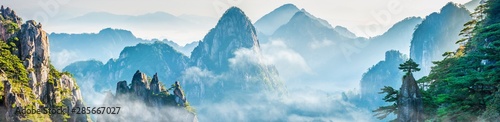 Wall mural landscape of mount huangshan (yellow mountains). unesco world heritage site. located in huangshan, a