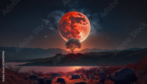 Landscape with blood moon or red moon and clouds generative aiWall mural
