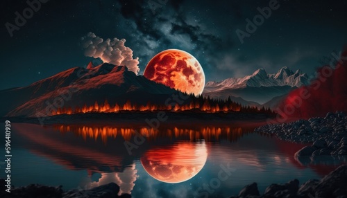 The watermark will not be included on Wall mural.: Landscape with blood moon or red moon and clouds generative ai
