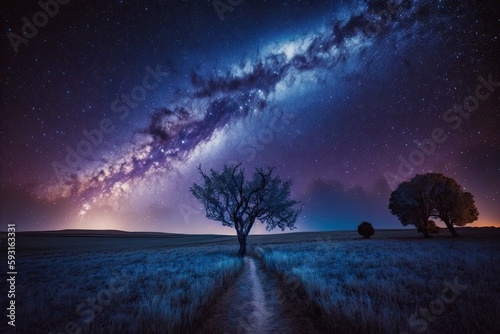 The watermark will not be included on Wall mural.: Landscape with blue milky way - night sky with stars - beautiful milky way during a clear night - gener