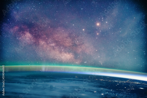 Wall mural landscape with milky way galaxy. earth and aurora view from space with milky way galaxy. (elements o