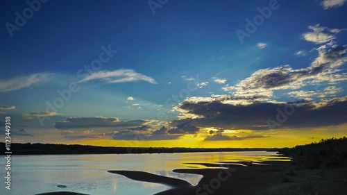 The watermark will not be included on Wall mural.: Landscape with river sunset and clouds, timelapse - 4k
