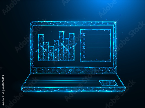 The watermark will not be included on Wall mural.: Laptop and analytical data low poly art - notebook and data analytics graphic polygonal vector illust