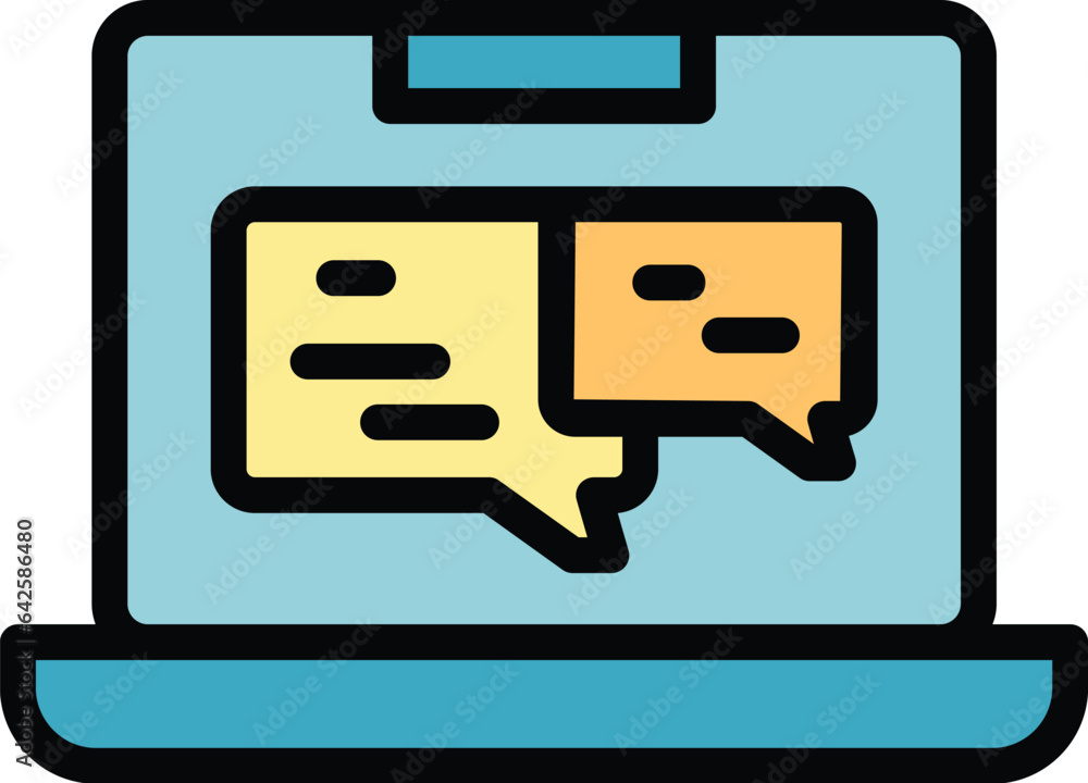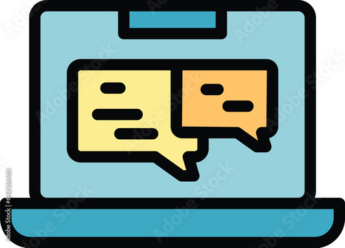 Laptop chat software icon outline vector - build process - code monitor color flatWall mural