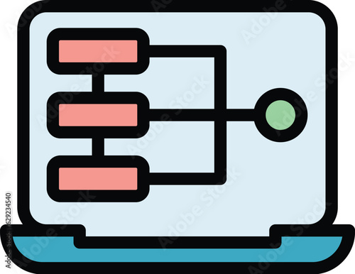 The watermark will not be included on Wall mural.: Laptop code html icon outline vector - cms development - website graphic color flat
