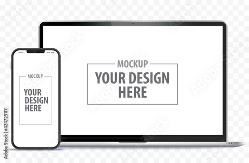 Wall mural laptop computer and mobile phone mockup. digital devices screen template vector illustration with tr - Wall murals Wall mural laptop computer and mobile phone mockup. digital devices screen template vector illustration with tr - Wall murals