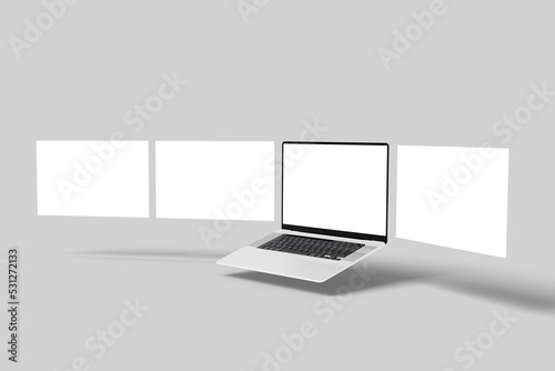 Wall mural laptop computer mockup with blank wireframing pages. concept for showcasing web-design projects on l - Wall murals Wall mural laptop computer mockup with blank wireframing pages. concept for showcasing web-design projects on l - Wall murals