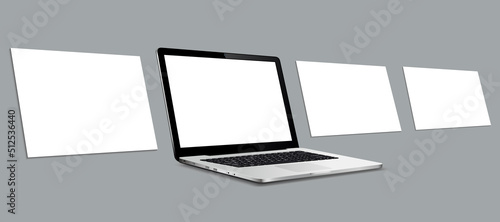 Wall mural laptop computer mockup with blank wireframing pages. concept for showcasing web-design projects. - Wall murals Wall mural laptop computer mockup with blank wireframing pages. concept for showcasing web-design projects. - Wall murals